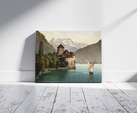 Chillon Castle, and Dent du Midi, Geneva Lake, Switzerland