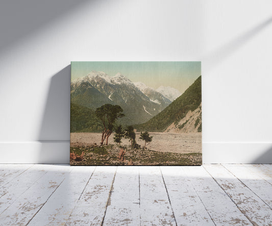 Photochrom postcards and prints were photographic negatives that were then transferred onto litho and chromographic printing plates, or literally stone blocks. The technique was invented in the 1880's by Hans Jakob Schmid. At a casual glance, Photochrom prints look like an ordinary (old) color photograph. In fact, they predate true color photography by decades, being much more like hand colorized photos. Each color in a final Photochrom required a separate lithographic stone. Each print had usually a minimum of six stones, and sometimes eleven or more! The photomechanical process allowed for brightly toned color prints to be mass produced for the first time. The collection craze for Photochrom travel postcards ended after World War One, though the process continued to be used for posters and reproduction art for years.