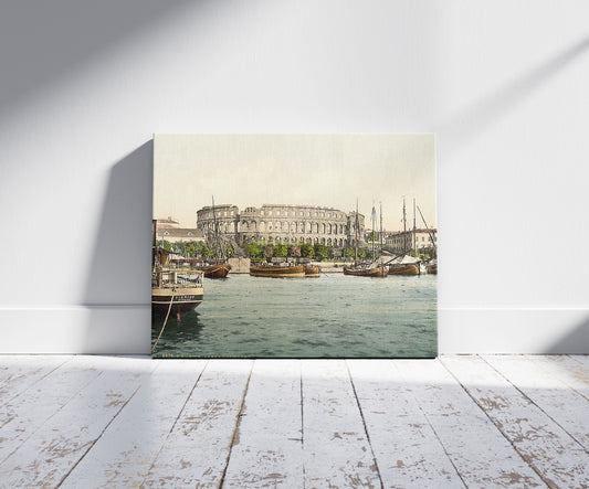 Pola, the arena, from the sea, Istria, Austro-Hungary