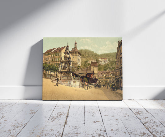 The market fountain, Carlsbad, Bohemia, Austro-Hungary