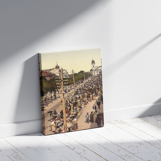 The Hauptstrazze and market, Debreczin (i.e., Debrecen), Hungary, Austro-Hungary