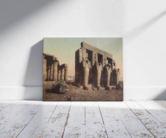 Thèbes, Ramesseum. Statues Orisis et les colonnes du temple