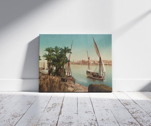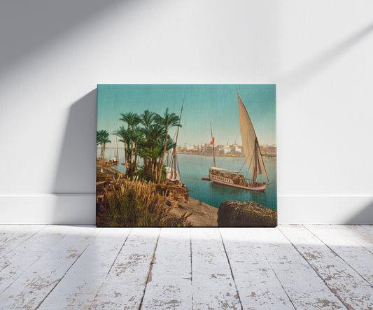 Egypt. Cairo. On the Nile shore near Boulac, with Dahableh making sail