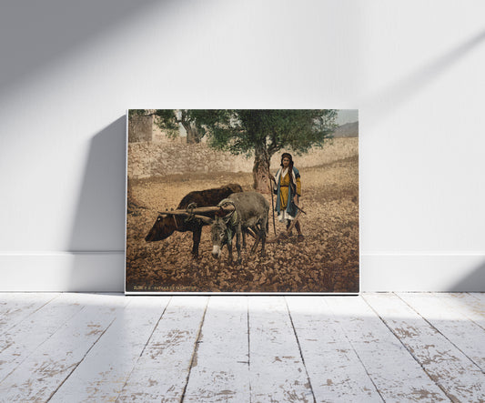 Native of Palestine working with an ox and an ass, Holy Land
