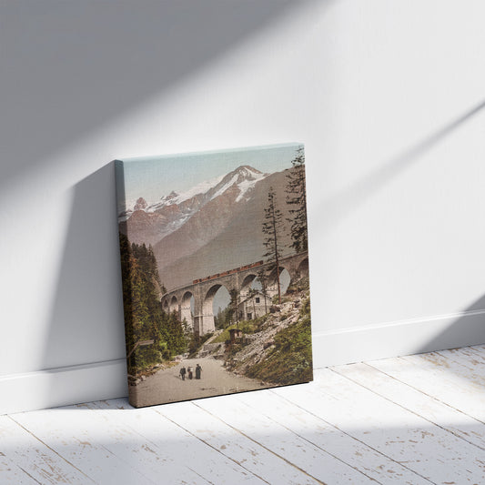 Chemin de Fer Fayet-Chamonix . Le viaduc avec vue sur le Montblanc