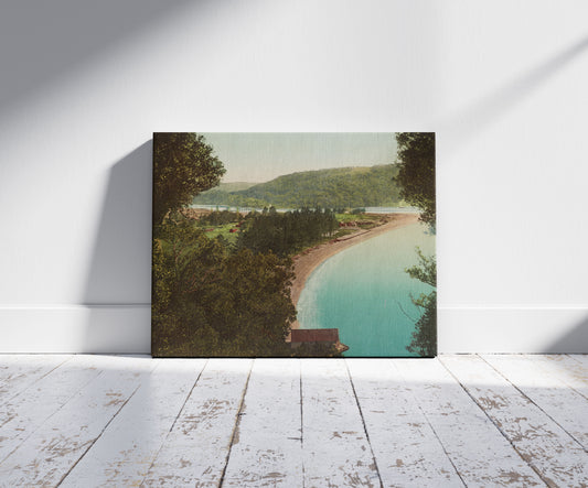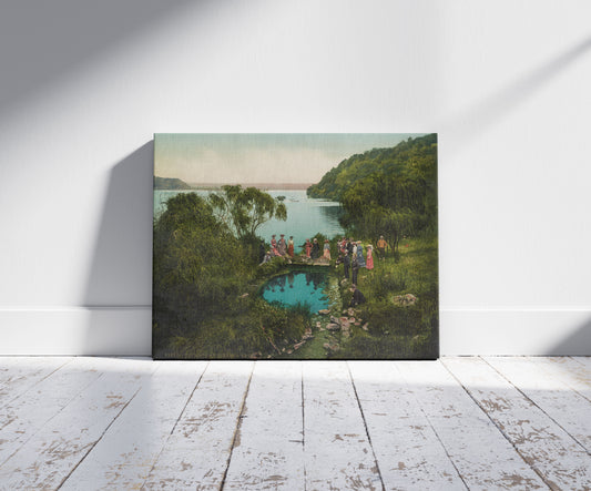 Tourists at Hinemoa Bath. Mokoia Island, Rotorua