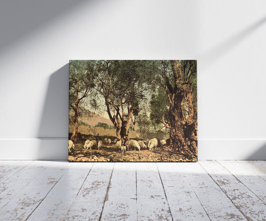 Shephard tending sheep in olive grove, Mentone, Riviera