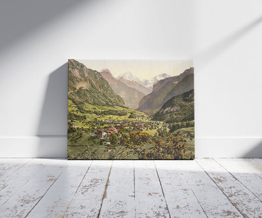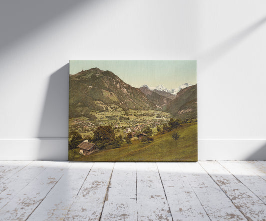 Wilderswil village, Schynige Platte, with Mount Eiger, Mönch, and Jungfrau, Bernese Oberland, Switzerland