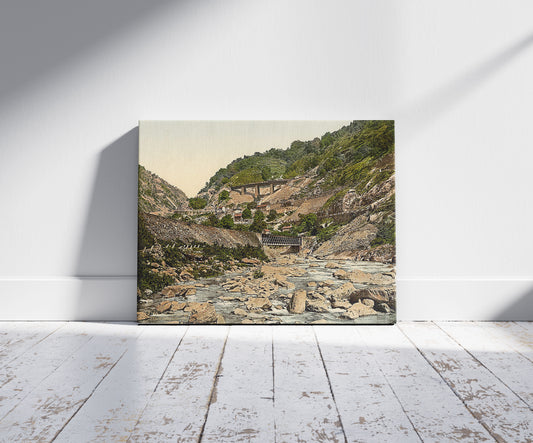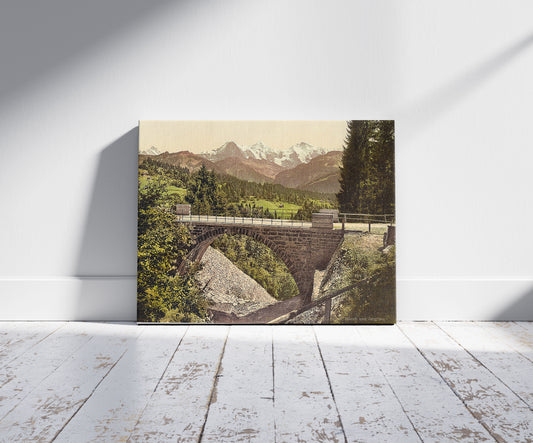 Bridge at Saint Beatenberg, with view of Mount Eiger, Mönch and Jungfrau, Bernese Oberland, Switzerland
