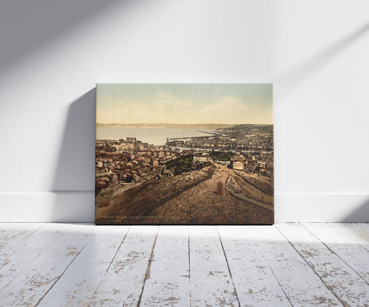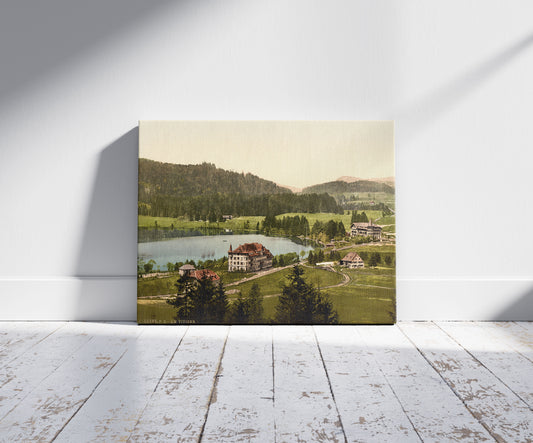 Photochrom postcards and prints were photographic negatives that were then transferred onto litho and chromographic printing plates, or literally stone blocks. The technique was invented in the 1880's by Hans Jakob Schmid. At a casual glance, Photochrom prints look like an ordinary (old) color photograph. In fact, they predate true color photography by decades, being much more like hand colorized photos. Each color in a final Photochrom required a separate lithographic stone. Each print had usually a minimum of six stones, and sometimes eleven or more! The photomechanical process allowed for brightly toned color prints to be mass produced for the first time. The collection craze for Photochrom travel postcards ended after World War One, though the process continued to be used for posters and reproduction art for years.