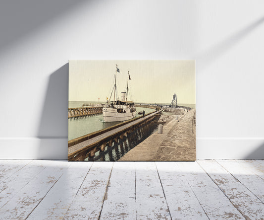 Steamer "Sequens" entering harbor, Colberg, Pomerania, Germany (i.e, Kołobrzeg, Poland)