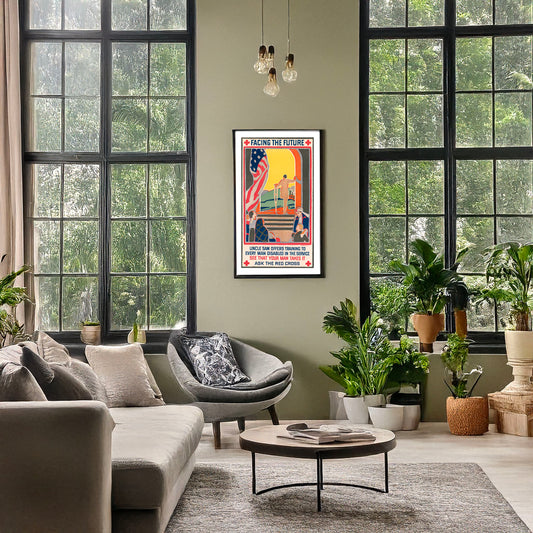 Facing the future Uncle Sam offers training to every man disabled in the service--See that your man takes it--Ask the Red Cross /