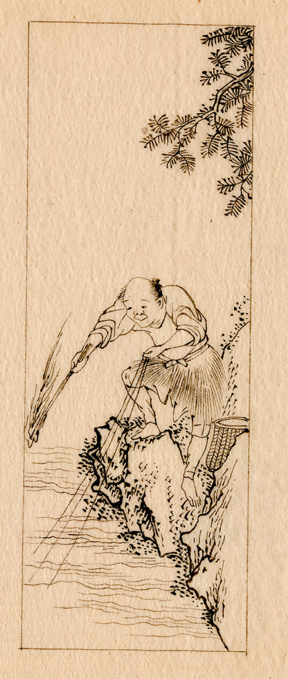 Buy wall art of this image titled: A man fishing from the bank of a river, from the Japanese Ukiyo-e and Yokohama-e Prints Collection by Second Story Prints. Top quality print reproductions available now!