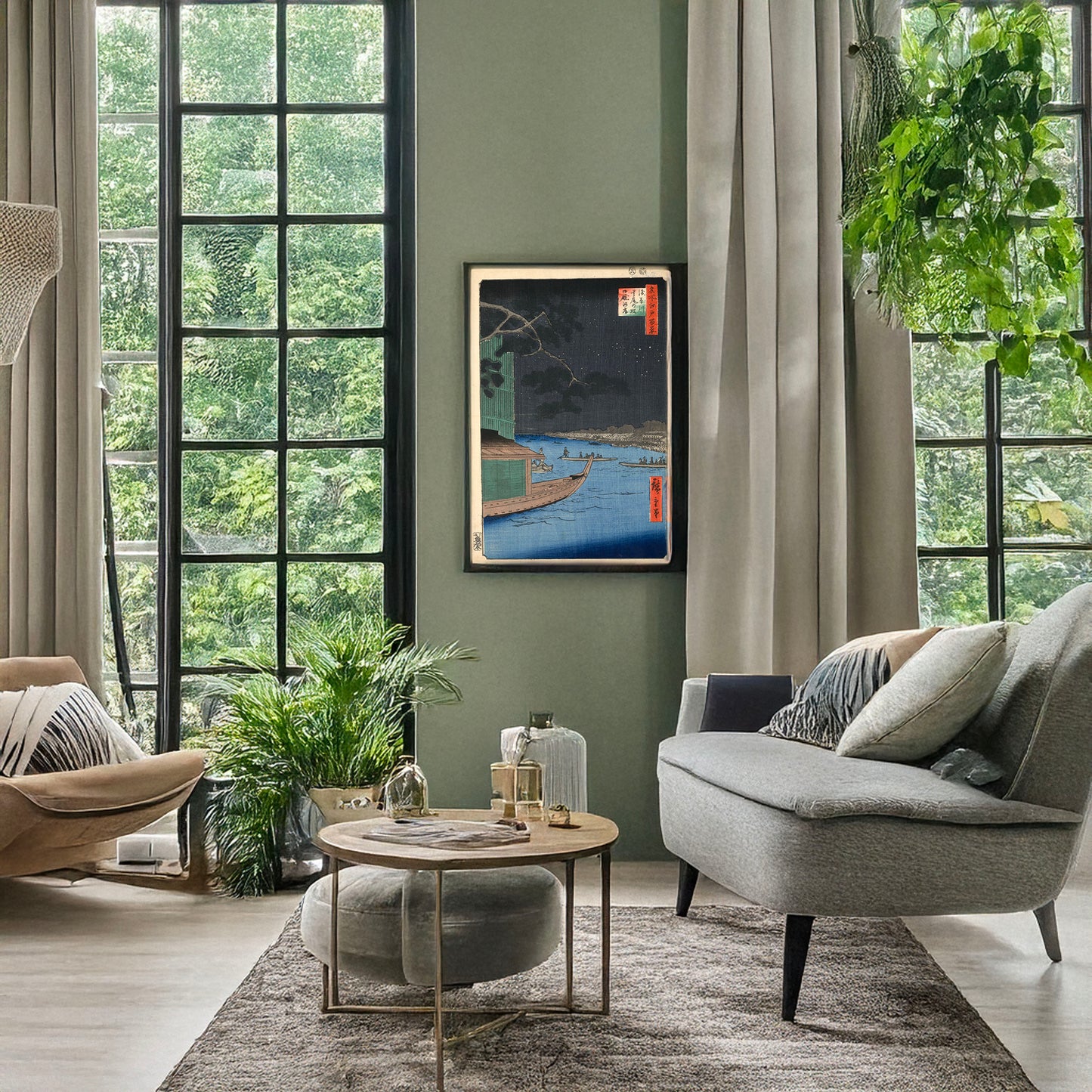 Buy wall art of this image titled: Asakusagawa shubi no matsu oumayagashi, from the Japanese Ukiyo-e and Yokohama-e Prints Collection by Second Story Prints. Top quality print reproductions available now!
