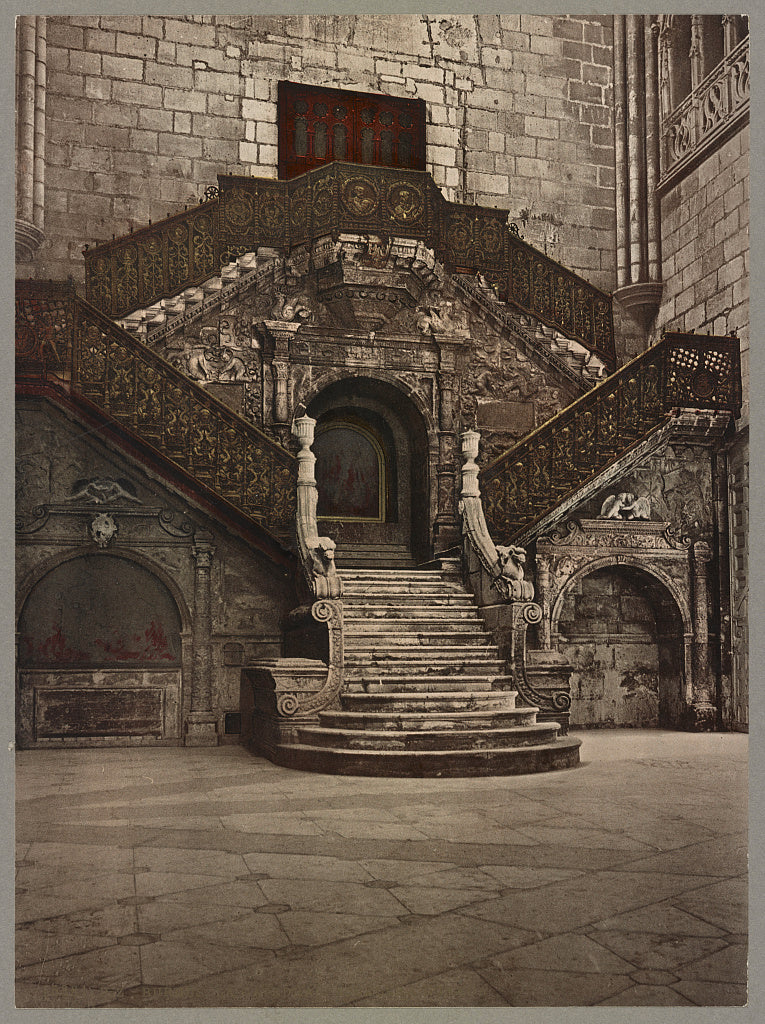 Buy wall art of this image titled: Burgos. La Catedrale Escalera Dorada, from the Vintage Photochrom Postcards Collection by Second Story Prints. Top quality print reproductions available now!