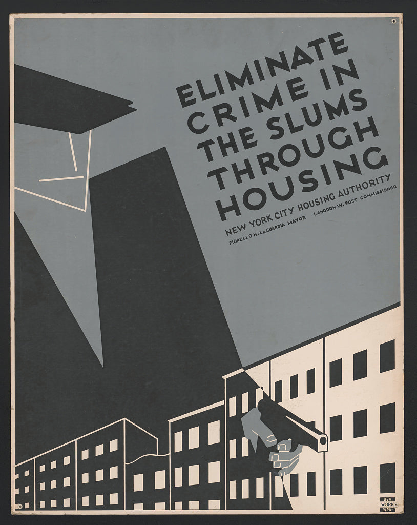 Buy wall art of this image titled: Eliminate crime in the slums through housing, from the WPA Posters Collection by Second Story Prints. Top quality print reproductions available now!