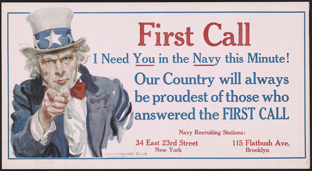 Buy wall art of this image titled: First call I need you in the Navy this minute! Our country will always be proudest of those who answered the first call., from the World War I Posters Collection by Second Story Prints. Top quality print reproductions available now!