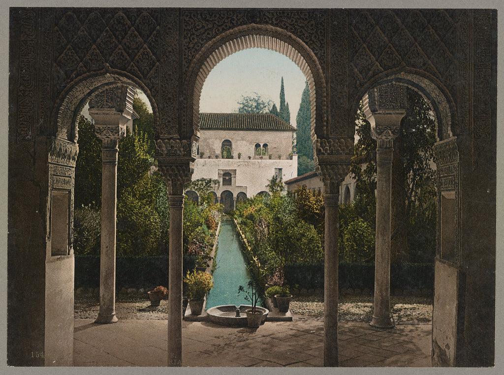 Buy wall art of this image titled: Granada. Galeria exterior del Generalife, from the Vintage Photochrom Postcards Collection by Second Story Prints. Top quality print reproductions available now!