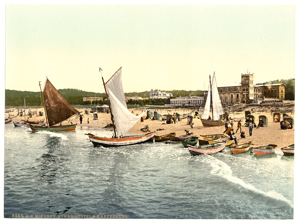 Buy wall art of this image titled: Hotel on the beach and Kaffeeberg, Misdroy, Pomerania, Germany (i.e., Międzyzdroje, Poland), from the Vintage Photochrom Postcards Collection by Second Story Prints. Top quality print reproductions available now!