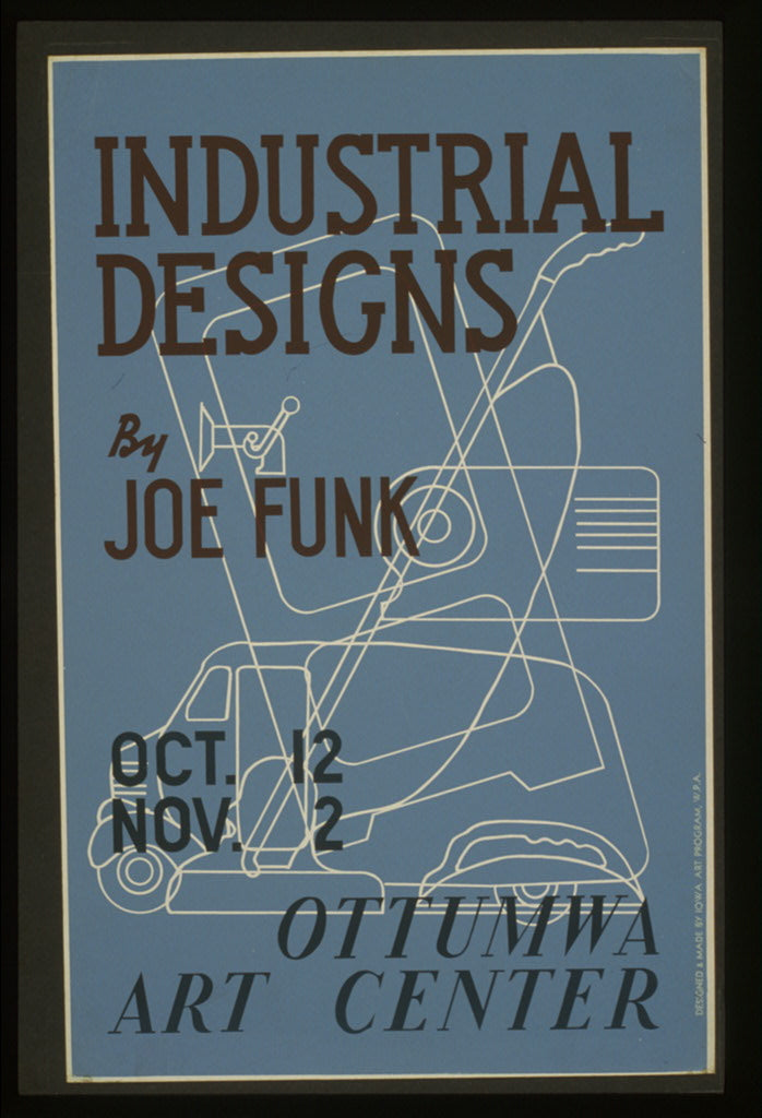Buy wall art of this image titled: Industrial designs by Joe Funk, Ottumwa Art Center, from the WPA Posters Collection by Second Story Prints. Top quality print reproductions available now!