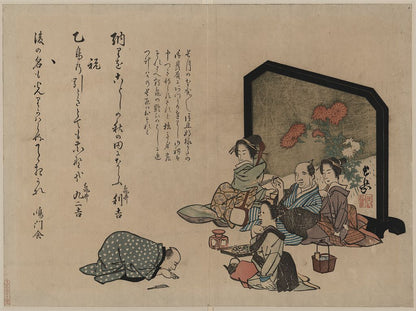 Buy wall art of this image titled: Kiku no tsuitate no mae no shuen, from the Japanese Ukiyo-e and Yokohama-e Prints Collection by Second Story Prints. Top quality print reproductions available now!