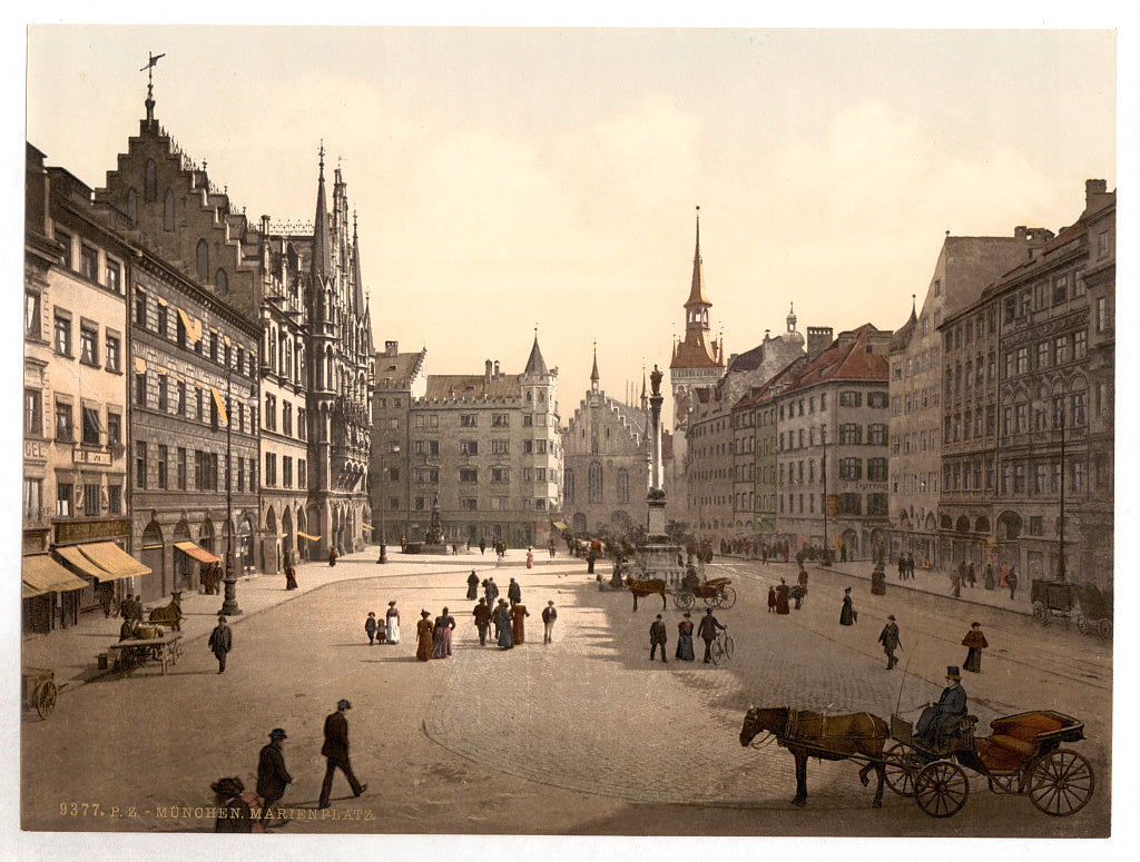 Buy wall art of this image titled: Marienplatz, Munich, Bavaria, Germany, from the Vintage Photochrom Postcards Collection by Second Story Prints. Top quality print reproductions available now!