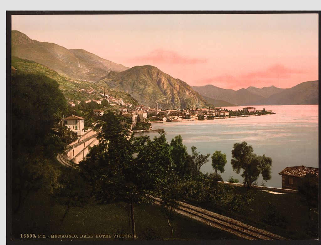 Buy wall art of this image titled: Menaggio, general view, Lake Como, Italy, from the Vintage Photochrom Postcards Collection by Second Story Prints. Top quality print reproductions available now!