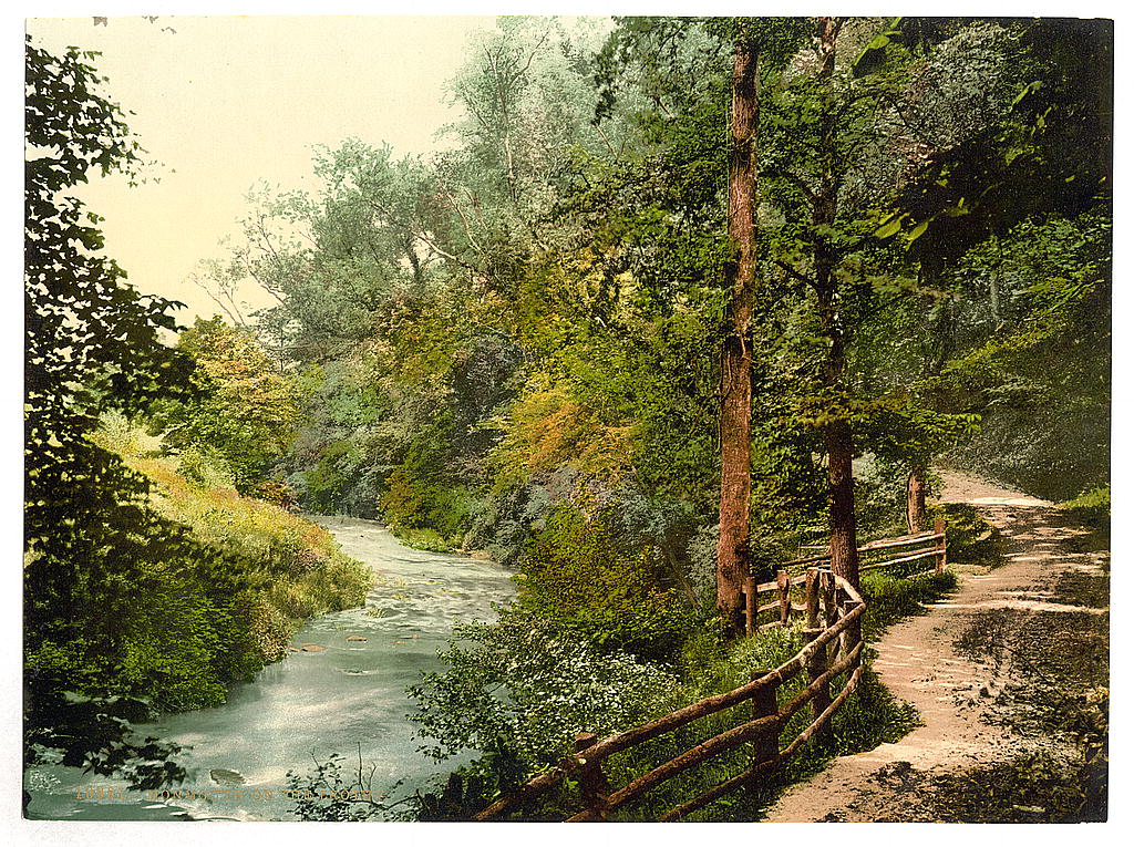 Buy wall art of this image titled: On the Trothy, Monmouth, Wales, from the Vintage Photochrom Postcards Collection by Second Story Prints. Top quality print reproductions available now!