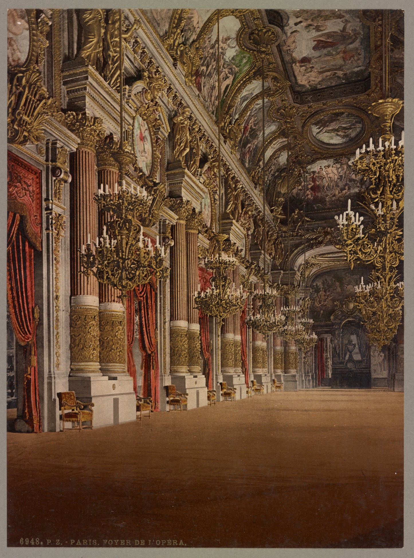 Buy wall art of this image titled: Paris, Foyer de L'Opera, from the Vintage Photochrom Postcards Collection by Second Story Prints. Top quality print reproductions available now!
