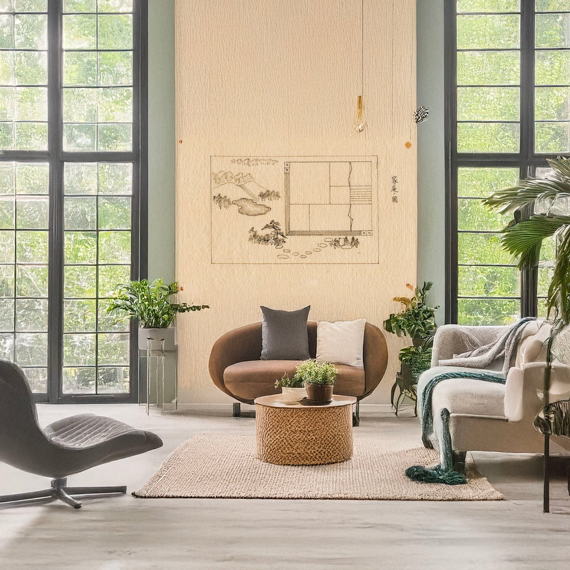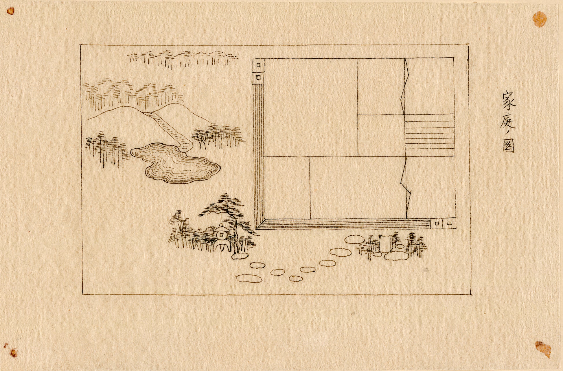 Buy wall art of this image titled: Plan of house and garden, from the Japanese Ukiyo-e and Yokohama-e Prints Collection by Second Story Prints. Top quality print reproductions available now!