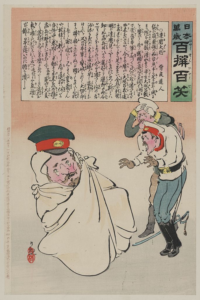 Buy wall art of this image titled: Russian General Kuropatkin in a sack, from the Japanese Ukiyo-e and Yokohama-e Prints Collection by Second Story Prints. Top quality print reproductions available now!