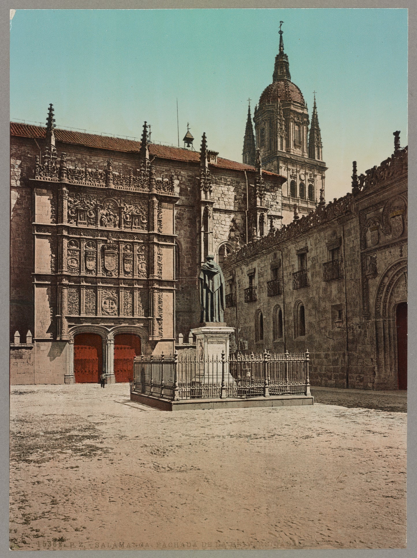 - Title in Detroit Publishing Co., Catalogue J foreign section, Detroit, Mich. : Detroit Publishing Company, 1905: "Spain. Salamanca. University. Front view."