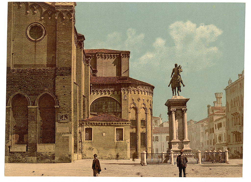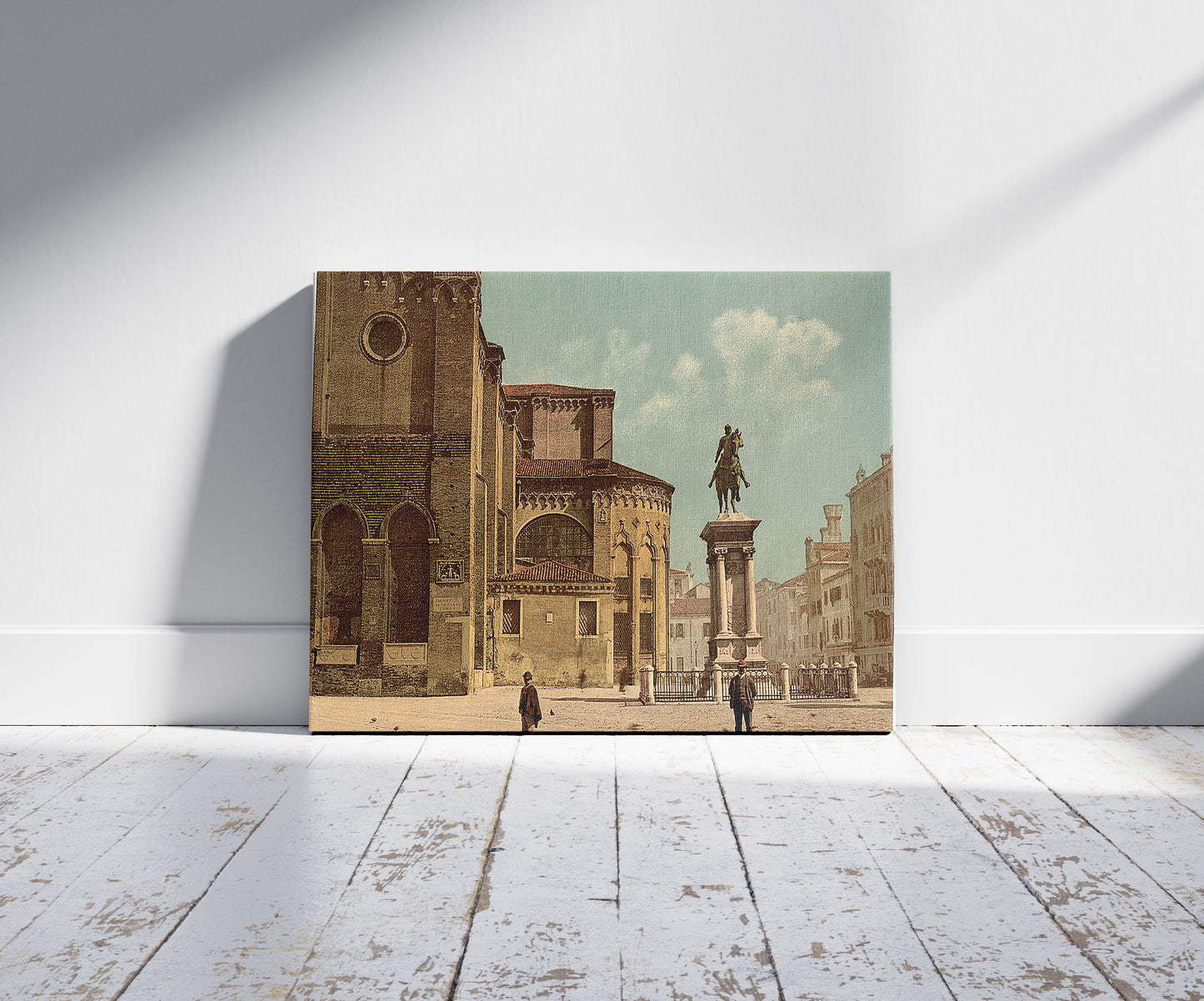 Buy wall art of this image titled: Santi Giovanni e Páolo church and statue of Bartolomeo Colleoni, Venice, Italy, from the Vintage Photochrom Postcards Collection by Second Story Prints. Top quality print reproductions available now!