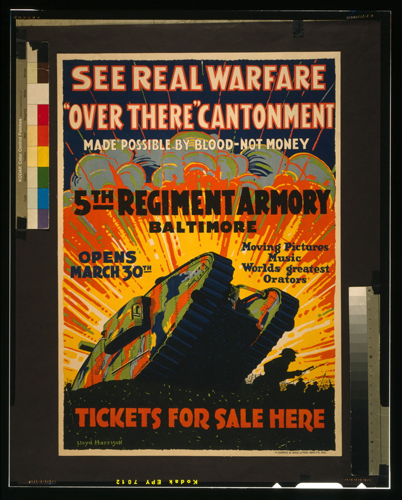 Buy wall art of this image titled: See real warfare - "over there" cantonment - made possible by blood-not money 5th Regiment Armory, Baltimore - tickets for sale here /, from the World War I Posters Collection by Second Story Prints. Top quality print reproductions available now!