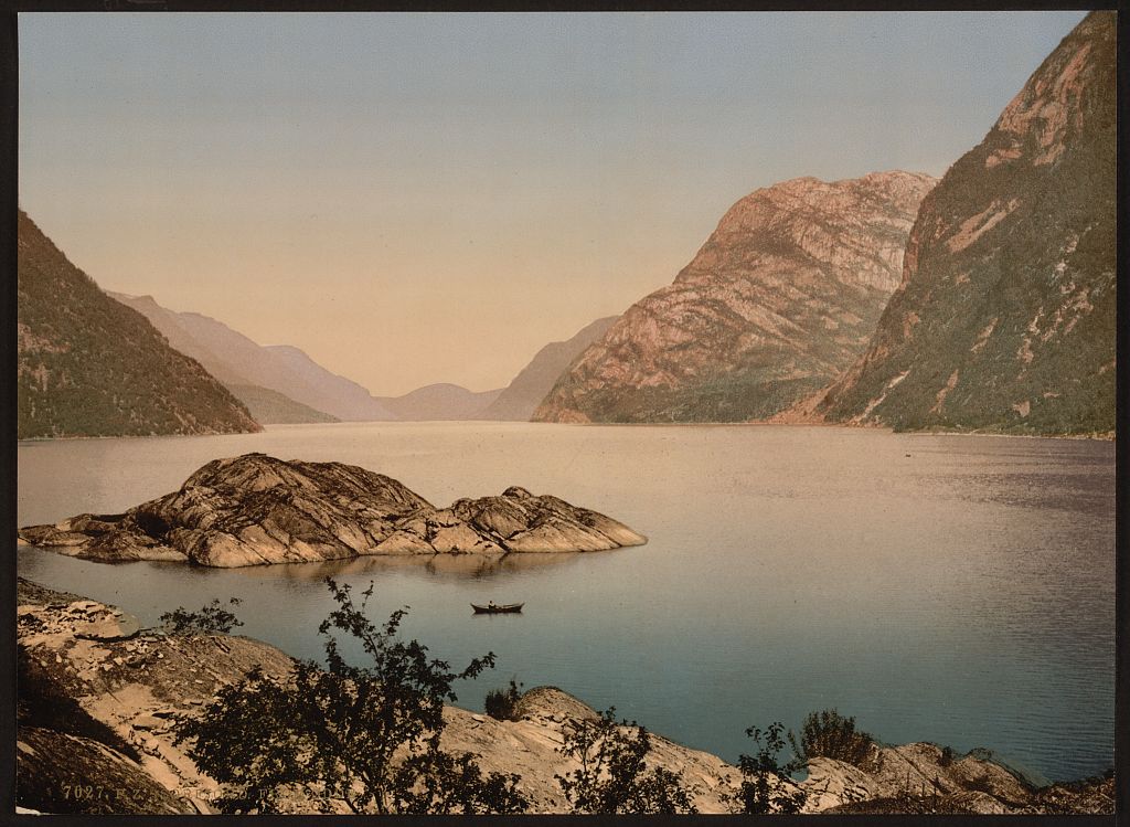 Buy wall art of this image titled: Sorfjord from Odde (i.e. Odda), Hardanger Fjord, Norway, from the Vintage Photochrom Postcards Collection by Second Story Prints. Top quality print reproductions available now!