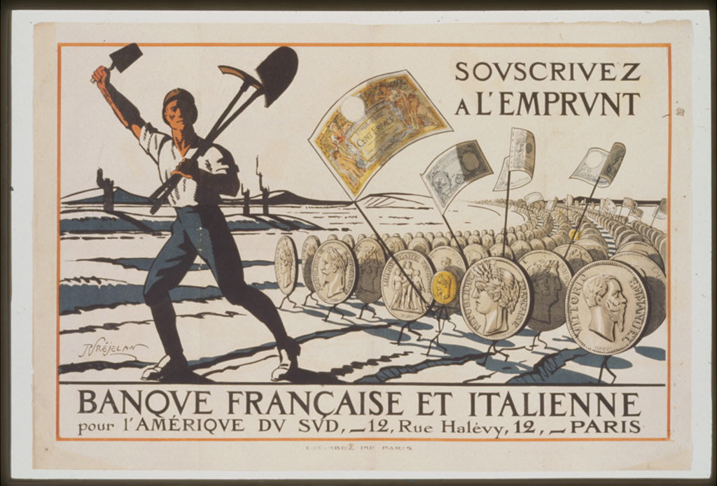 Buy wall art of this image titled: Souscrivez á l'Emprunt. Banque Française et Italienne pour l'Amérique du sud, from the World War I Posters Collection by Second Story Prints. Top quality print reproductions available now!