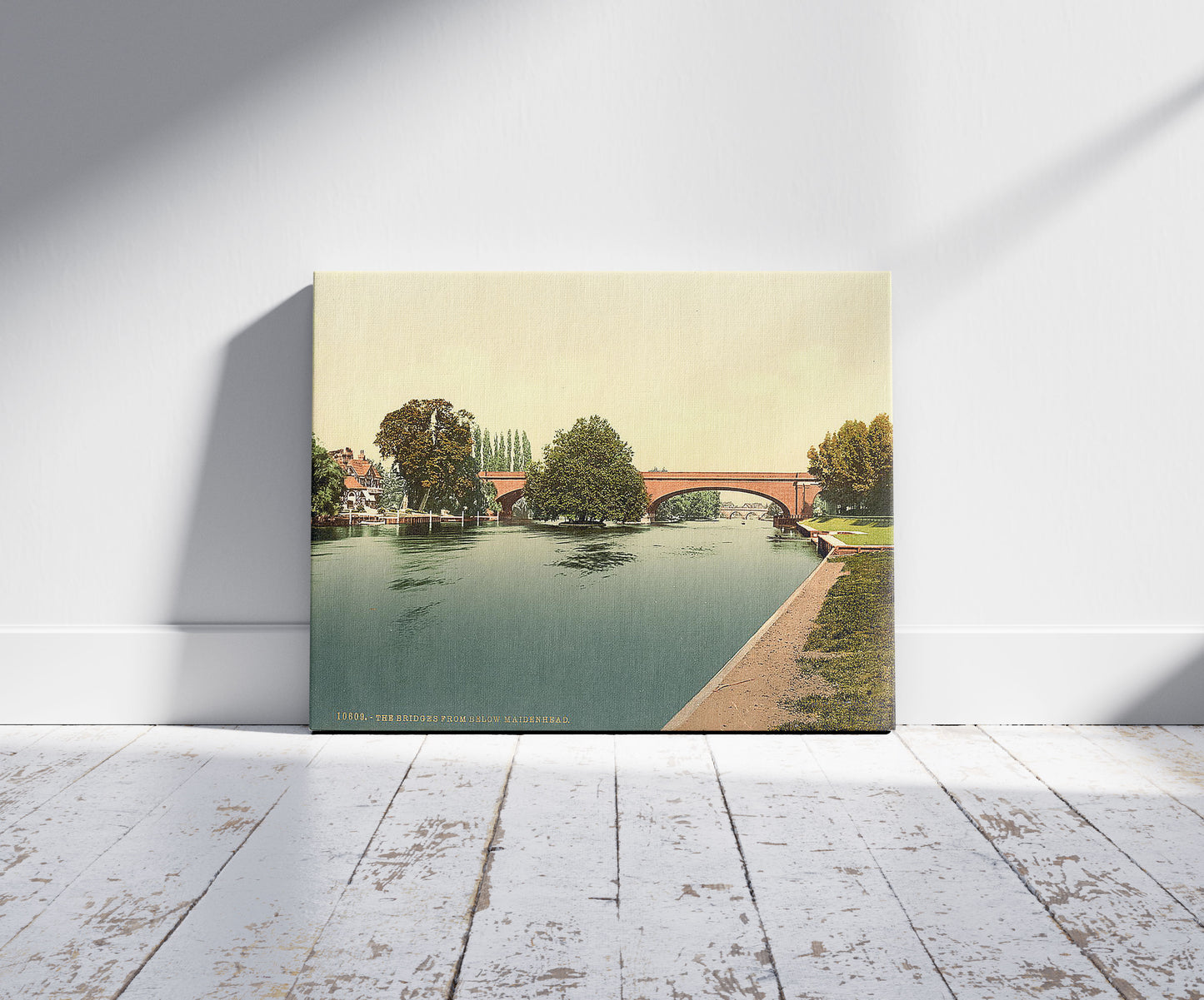 Buy wall art of this image titled: The bridge from below Maidenhead, England, from the Vintage Photochrom Postcards Collection by Second Story Prints. Top quality print reproductions available now!