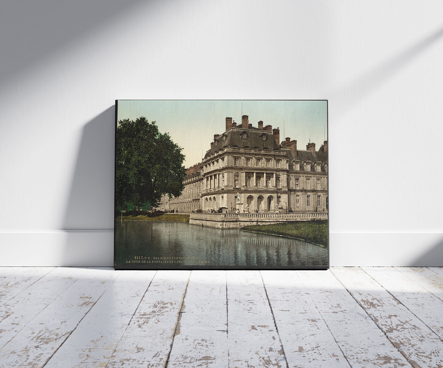 Buy wall art of this image titled: The fountain and carp's Pond, Fontainebleau Palace, France, from the Vintage Photochrom Postcards Collection by Second Story Prints. Top quality print reproductions available now!