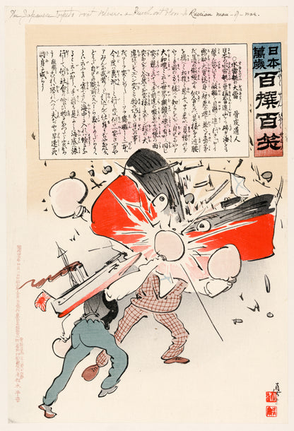 Buy wall art of this image titled: The Japanese torpedo boat delivers a knock-out blow to Russian man-of-war, from the Japanese Ukiyo-e and Yokohama-e Prints Collection by Second Story Prints. Top quality print reproductions available now!