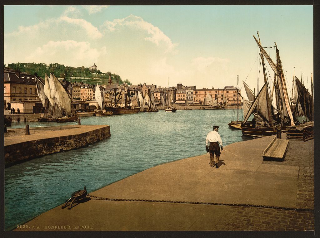 Buy wall art of this image titled: The port, Honfleur, France, from the Vintage Photochrom Postcards Collection by Second Story Prints. Top quality print reproductions available now!