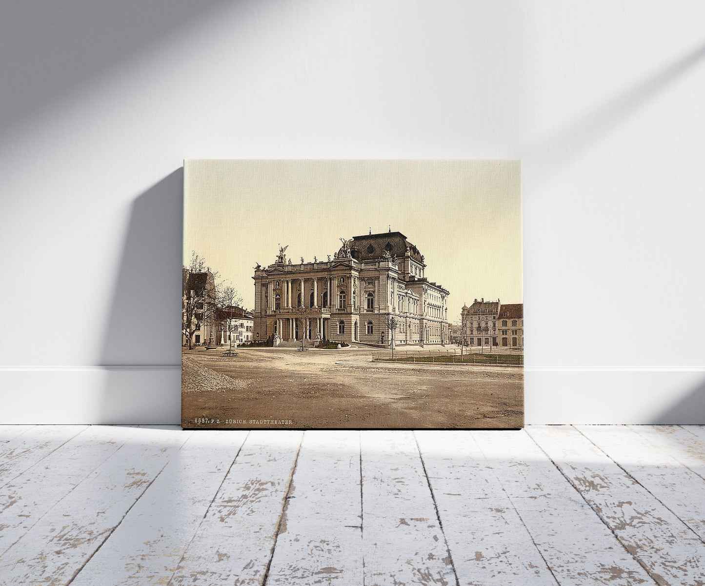 Buy wall art of this image titled: The theatre, Zurich, Switzerland, from the Vintage Photochrom Postcards Collection by Second Story Prints. Top quality print reproductions available now!