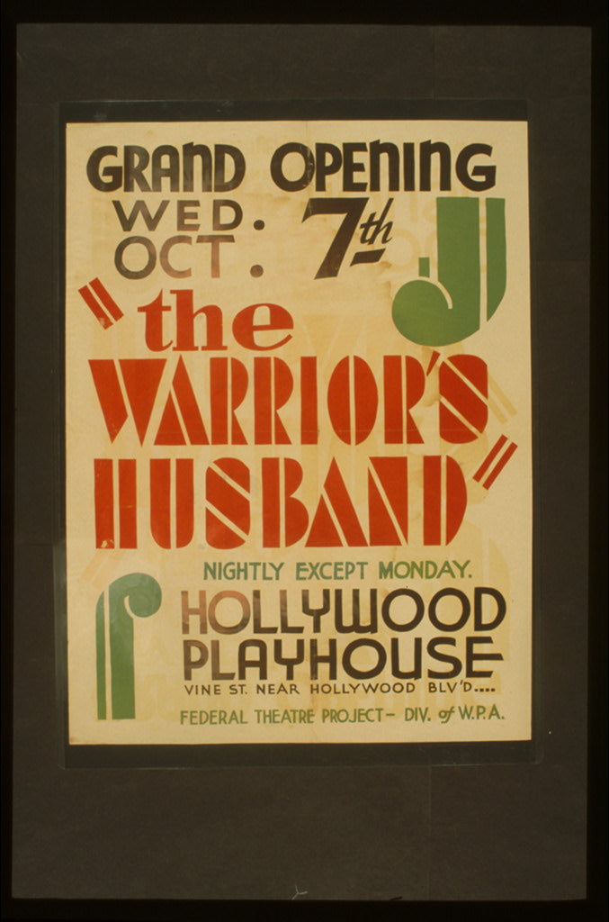 Buy wall art of this image titled: "The warrior's husband" Nightly except Monday : Hollywood Playhouse., from the WPA Posters Collection by Second Story Prints. Top quality print reproductions available now!