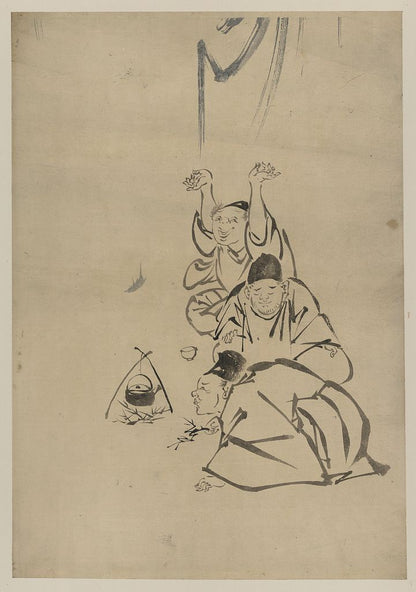 Buy wall art of this image titled: Three monks or travelers lighting a fire beneath a teapot, from the Japanese Ukiyo-e and Yokohama-e Prints Collection by Second Story Prints. Top quality print reproductions available now!
